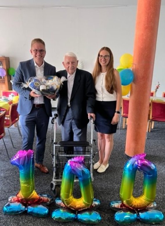 Am vergangenen Freitag ging es für Bürgermeister Kai-Achim Klare nach Ettenheimmünster, um dort Johann Wegmann, dem langjährigen Ruster Bürger und ehemaligen Schulleiter der Ruster Grund- und Hauptschule, persönlich zu dessen 100. Geburtstag zu gratulieren. Klare überbrachte Wegmann dabei die Glückwünsche der Ruster Bürgerschaft sowie des Gemeinderates.